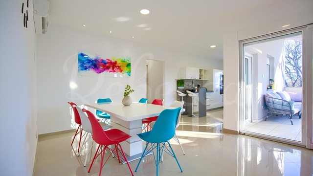 Zum Verkauf steht ein Haus bestehend aus zwei Etagen mit drei Wohnungen. Es liegt auf einem Grundstück von 1000 m2. Die Wohnung im Erdgeschoss besteht aus einem Wohnzimmer, einer Küche mit Esszimmer, von der aus man Zugang zur Terrasse hat, drei Schlafzimmern, zwei Badezimmern mit einer Gesamtwohnfläche von 69 m2. Die zweite Wohnung im Erdgeschoss besteht aus einem Wohnzimmer, einer Küche mit Esszimmer, einem Schlafzimmer und einem Badezimmer, mit einer Fläche von 40 m2. Die Innentreppe führt zur oberen Wohnung mit einer Gesamtfläche von 110 m2 und besteht aus einem großen Wohnzimmer, einer Küche mit Esszimmer, drei Schlafzimmern, drei Badezimmern und zwei Terrassen. Das Haus verfügt über einen Heizraum. Geheizt und gekühlt wird mit Hilfe einer Klimaanlage, es wurden jedoch Rohre für die Zentralheizung installiert. Die Taverne verfügt über ein eigenes Badezimmer und neben der Taverne gibt es auch eine Garage. Das Eigentum ist ordentlich 1/1.