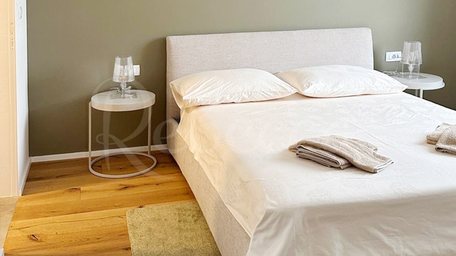 Ova vila nalazi se u neposrednoj blizini Savudrije, na samo devet kilometara od centra Umaga i u blizini slovenske granice. Smještena je na zemljištu površine 650 m2, stambene površine 194 m2 na dvije etaže. U prizemlju se nalazi kuhinja, dnevni boravak, blagovaonica, jedna spavaća soba i kupaonica, odakle se izlazi na natkrivenu terasu od 21,60 m2, zamišljenu kao relaks zonu s grijanim bazenom od 28 m2, te vanjska kuhinja površine 47,84 m2 i prostor za slobodno vrijeme u suterenskom dijelu. Na prvom katu ove moderne vile nalaze se tri spavaće sobe s kupaonicama, te natkrivena terasa od 21,60 m2 s koje se pruža spektakularan pogled na more i maslinike. Koncept pametne kuće novom vlasniku pruža dodatnu udobnost i luksuz. Vila je nova i prodaje se kompletno namještena.