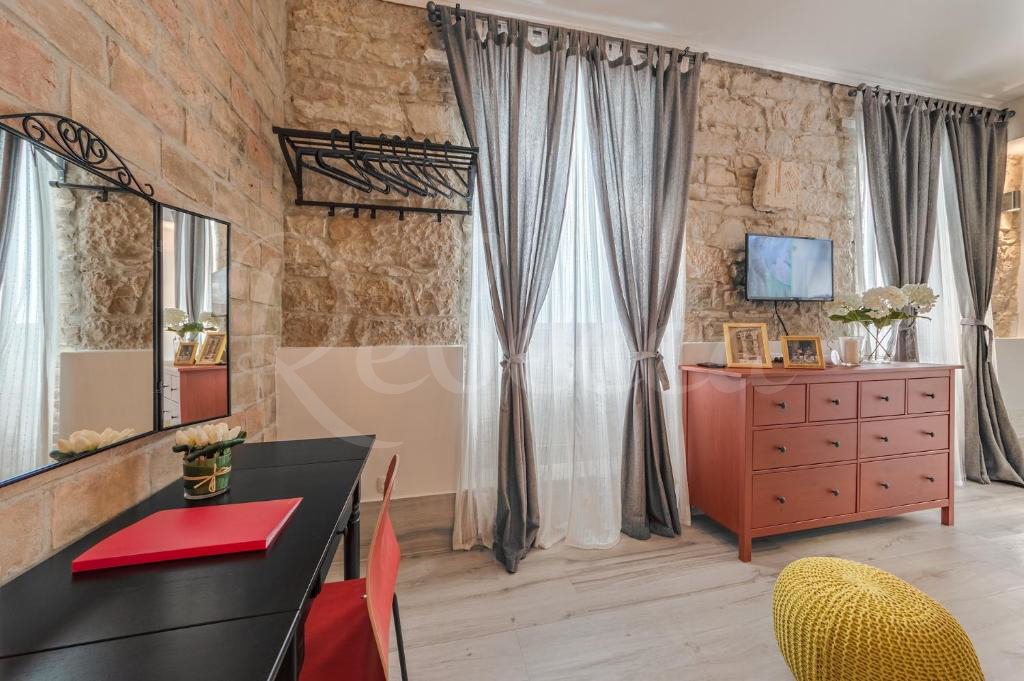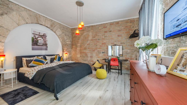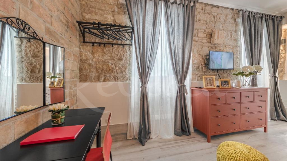 Prodaje se potpuno namješten stan u prizemlju zgrade, ukupne površine 59 m2, koji je uređen kao dvije samostalne stambene jedinice, odnosno dva studio apartmana.Svaka jedinica ima dnevno spavaći dio s kupaonom a ulazni hodnik ih odvaja. Nalazi se u centru grada, u blizini svih sadržaja i u neposrednoj blizini Arene. Zbog svoje odlične lokacije i funkcionalnog rasporeda, stan je pogodan osim za stanovanje i najam i za poslovnu namjenu.