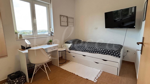 Prodaje s svoj stan u Ližnjanu - moderan, prostran stan (87,48 m2) s dvije spavaće sobe. Na drugom, zadnjem katu, s pogledom na more. Balkon se proteže na obje strane stana. Osigurano parkirno mjesto.