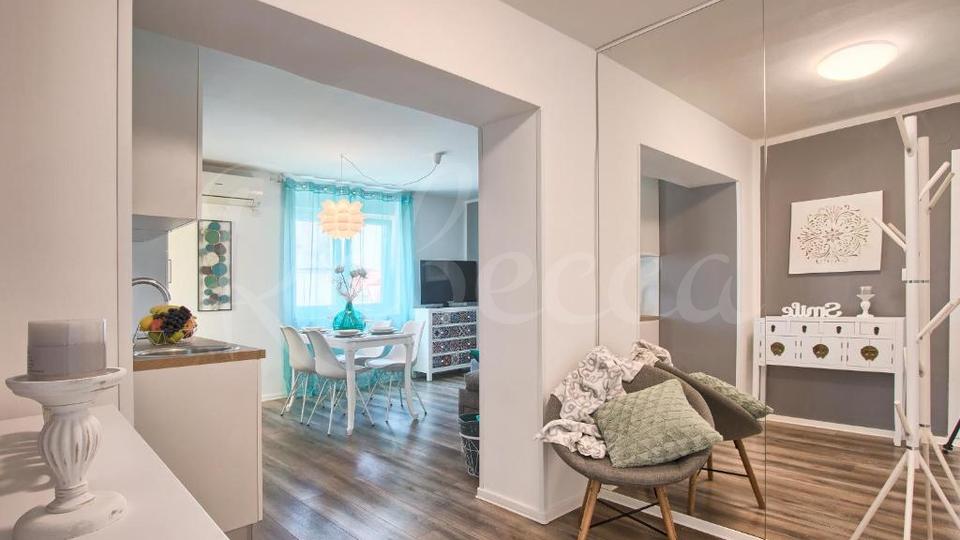 In vendita appartamento completamente arredato e corredato di 43,60 m2. È composto da due camere da letto, un soggiorno con cucina e sala da pranzo, un bagno, un corridoio e un balcone. Parcheggio di fronte all'edificio. Si trova vicino al centro città e a tutti i servizi.
